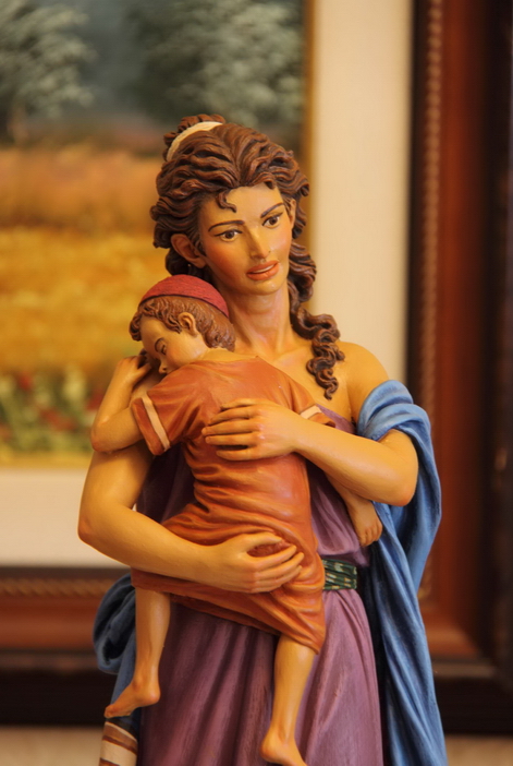 Hay que tener en cuenta que Hollywood, idealiza mucho a sus personajes y para hacerlos mas atractivos no escatima en cometer errores garrafales, como en este caso las vestiduras totalmente romanas de una pastora hija de un sacerdote judio que vivía en el desierto cuidando cabras, lógicamente, a esa belleza que era Yvonne de Carlo, no la iban a dejar salir con unas vestiduras poco atractivas, por lo que ni cortos ni perezosos la "encasquetaron" un vestido romano, escotado (que ni de broma llevarían las mujeres judías y menos en esa época) totalmente precioso y sugerente, además del peinado, ambos correspondientes a una época mucho mas moderna y dentro del Imperio Romano, pero Hollywood es así, copia y pone lo que se le ocurre para sacar un producto mas estético, asequible y comercial para que llegue al gran público; de ahí mi error de considerar a estas figuras de tipo romano ya que algo parecido ocurre con la otra pastora (por cierto también bellísima con un peinado romano tipo imperio).