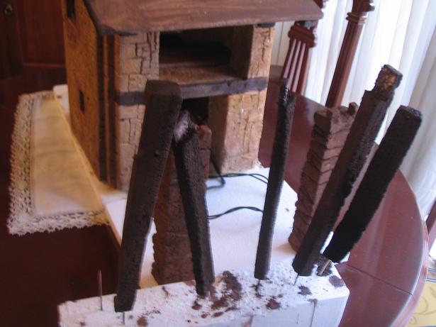 En cuanto a la casa te diré que la balconada está hecha con unos palitos que me traje ayer de la playa.Están bañados ( y desgastados ) por el mar y me encantan porque parecen antiguos.Traje unos cuantos más de todos los tamaños que iré poniendo por el belén por distintos rincones.