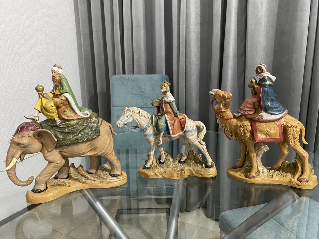 Buenas, estoy vendiendo un grupo de imágenes fontanini originales , de colección unas fabricadas en 1993 y otras en el 2000 , vienen : los tres magos uno a camello , otro a caballo y otro en elefante de unos 30 cm de grande estos hechos en 2000 , la Virgen Maria y San José de unos 19 cm junto con el niño Jesús , la mula y el buey hechos en 1993 , se vende el conjunto total , estoy ubicado en Bogota Colombia … adjunto imágenes, lo vendo por 1.945.000$ pesos colombianos .
