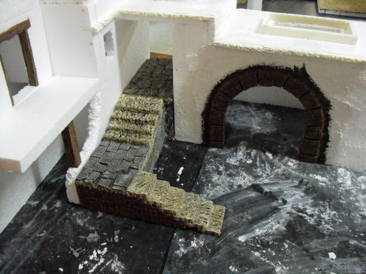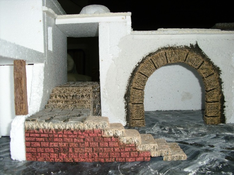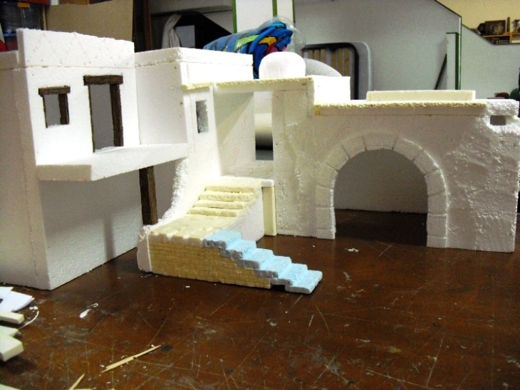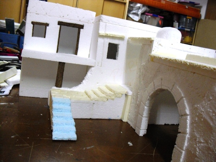Aqui os pongo alguna foto del principio de un grupo de casas con una fuente que estoy haciendo, la casa de las fotos está basada en una del Belen de la Comunidad de Madrid y segun me dicen fuentes muy bien informadas construido por la ABM. (pero ni es igual ni me saldra tan fantastica como a ellos)