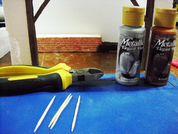 Lo que imita a los remaches de las puertas son los trocitos de palillo que pongo para que se quede mas fijo con la cola, como queda cortado en plano, le pongo un poco de pintura metalica en plata o en cobre.