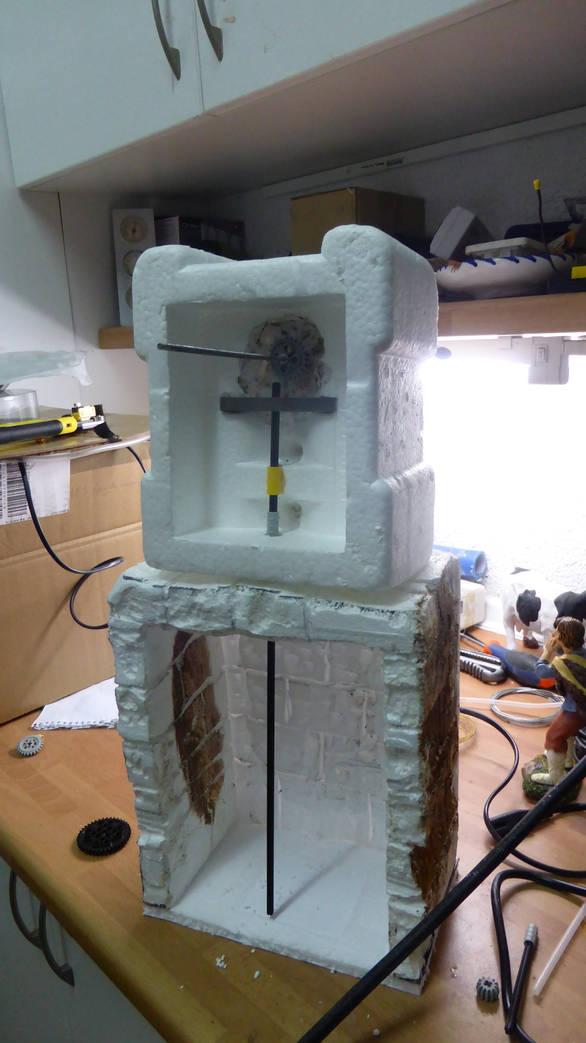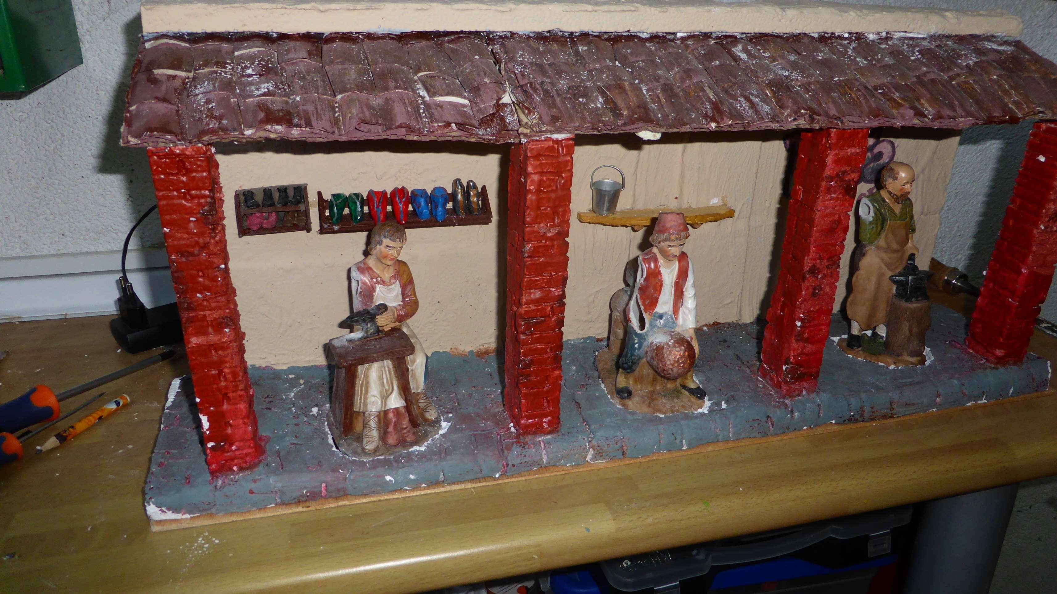 Hola a todos, sigo el foro desde hace años y es la primera vez que escribo sobre un tema, todos los años doto de movimiento a figuras de forma individual o en grupo, en este caso es un grupo de varios personajes, un zapatero, un calderero, un herrero, un molinero subiendo un saco y otro espantando una ratón y un ratón que escapa, todo ello con un solo motor, en la parte superior he colocado un molino con doble movimiento con otro motor dando al conjunto un efecto que creo bastante aceptable ... en todos los casos utilizo figuras baratas compradas en los chinos y que son copias burdas de maestros artesanos, en algunos casos también he utilizado las de Oliver, pero las de arcilla (compro en Sicilia) en ningún caso, os dejo algunas fotos del proceso y un video del resultado final en el belén que acabo de terminar de este año (aunque no se si tiene demasiado peso, para poder visualizarlo)...a ver que os parece… un saludo.