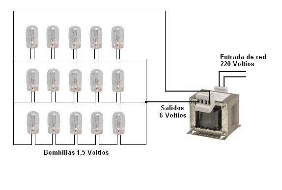 Angel, El tuyo según esquema es equivocado, en cuántas las bombillas ya no son conectadas en serie pero en paralelo y por tanto en cuanto se quemen alimentáis.