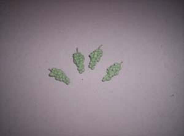 Al estar rebozados en Imedio, los últimos granos se van colocando para que tome la forma colgante de cualquier racimo y se quedan pegados sin problemas. Luego se pintan.