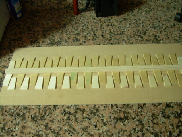 El instrumental que he utilizando para hacer las tejas, los he hecho yo de madera de pino.