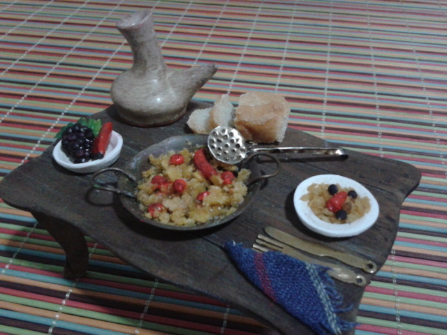 Pues te ha quedado bien chula...algún plato vacio para ser servido ??? con que has hecho el pan ??? parece de verdad.