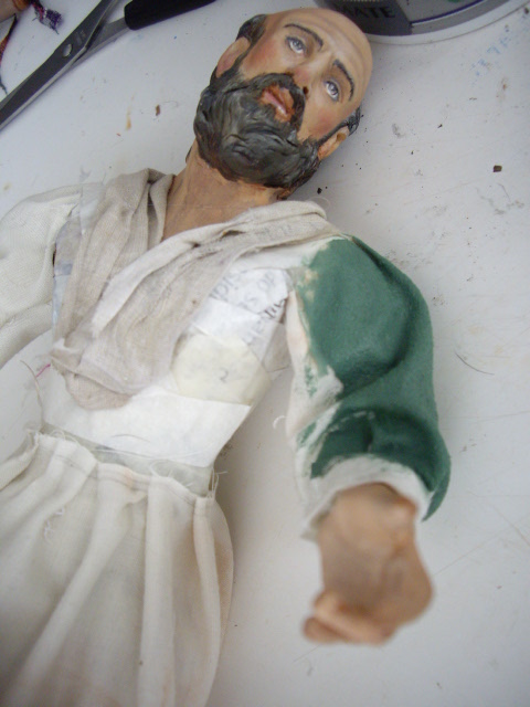 En una foto parece que hay un alambre con un "bucle" (la foto IMGP2608) pero no sé si es así o se le hace algún orificio al barro para sujetarlo.