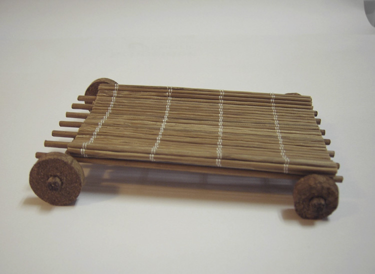 HAIMA. Materiales: Tablas de madera de cajas de frutas, varilla de madera de 4 mm. de diámetro, palitos de brochetas (estacas y soporte telar puerta), telas, hilo encerado (para coser zapatos), nogalina, loctite... Realización: Cortar tabla-techo, base y demás palos-pilares de nuestra haima. Cortar too los palitos de brocheta para hacer las estacas y los soportes de la “puerta”. Hacer con taladro los agujeros, los A torcidos hacia el exterior y los B rectos. Teñir piezas y pegarlas. Así ya tenemos la estructura de la haima. Cortar la tela a la medida adecuada y coserla. Colocar tela encima de la estructura. Por debajo esta grapada a la tabla. La tela de la puerta esta enrollada en un palito de brocheta. Cortar hilo encerado para las cuerdas. Por último, Coser las cuerdas a la haima y atarlo por el otro extremo a las estacas. Ya tenemos nuestra haima. Saludos. P: Sí queréis podéis ponerle too a la tela como dijo angel-gabriel barniz o porcelana liquida. Yo no lo he puesto.