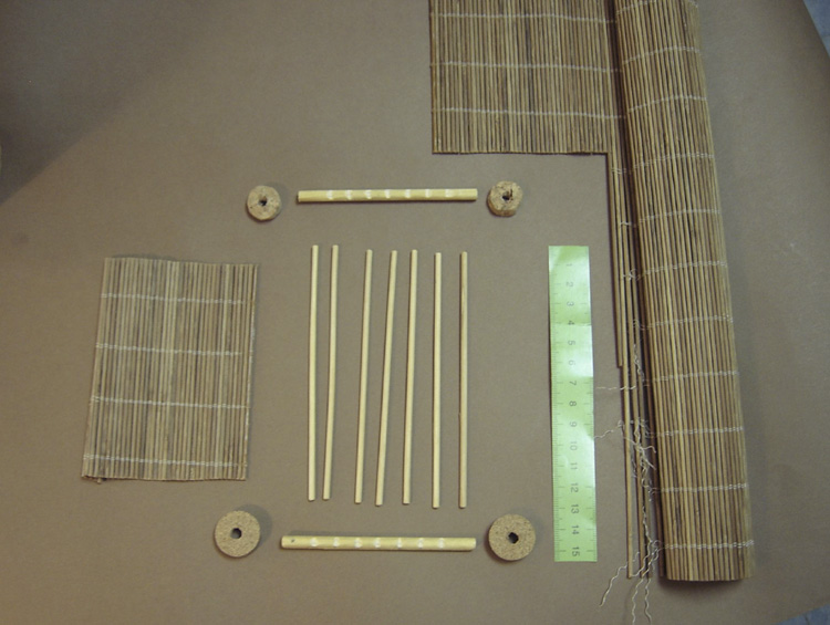 Palito de algodón dulce, palitos de brochetas, corcho de botella de vino, esterilla playa o mantel individual, hilo, nogalina, cola blanca...