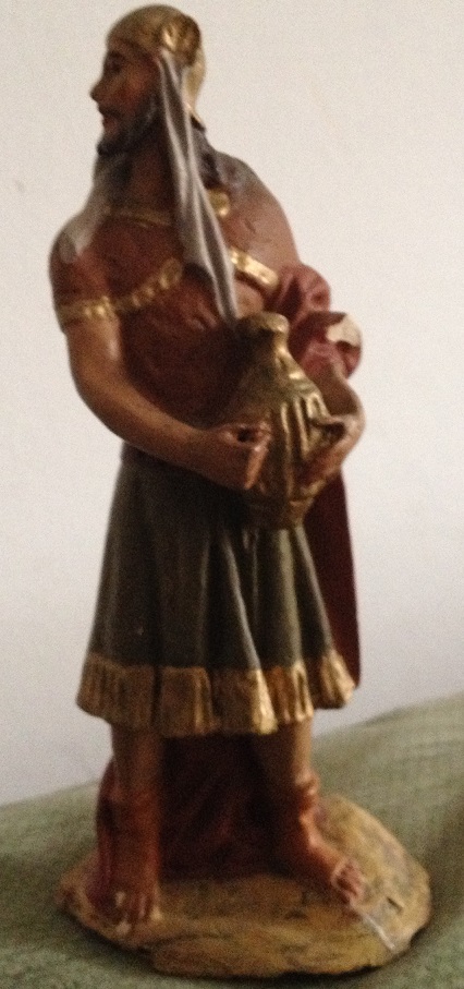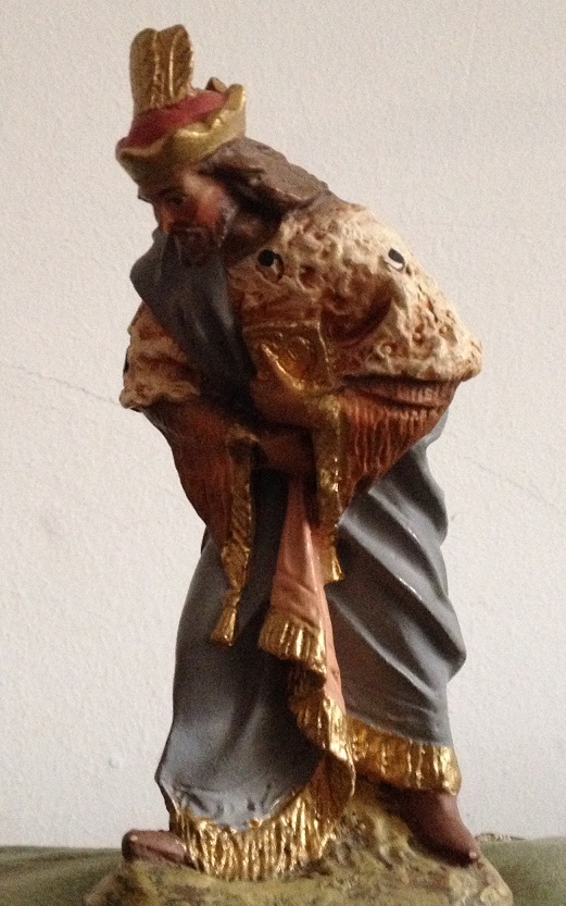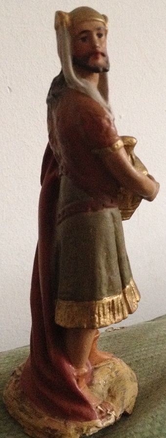 También hay unos reyes a pie, del que me gusta especialmente el del traje más oriental, que para mi parece inspirado en cuadros de santas de Zurbarán o Núñez de la Almudaina.