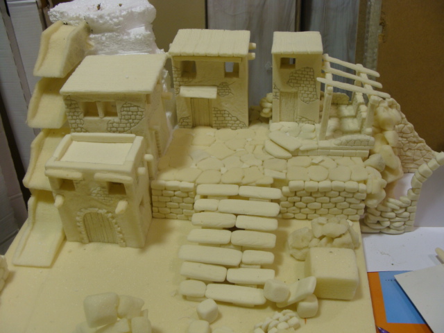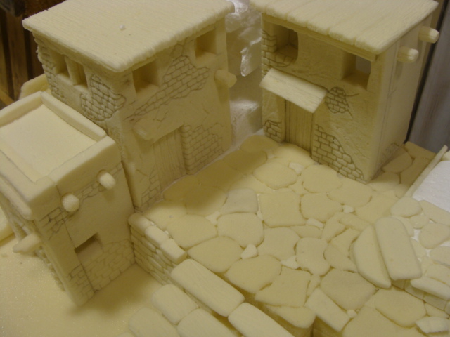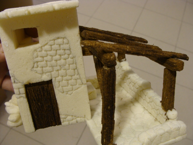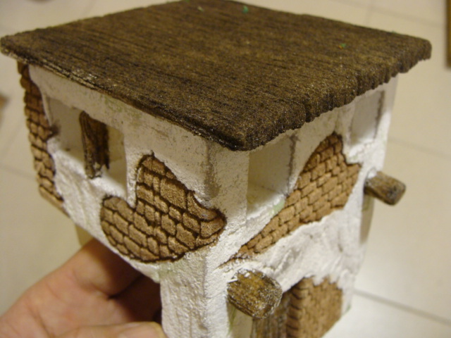 Me ha gustado mucho la textura que le das a las piedras pero veo que le das la misma a la madera, a los ladrillos, y claro no es lo mismo una cosa que otra. No sé si la textura se la das realmente tu o es una cosa del material pero en el caso de las piedras queda muy bien, perfecto, sinceramente, como si fueran piedras de verdad (ver la foto 55 y la de detalle piedras) pero en el caso de los techos de madera o las paredes de las casas, esa textura ya no es la correcta y quedaría mejor otra más lisa, la madera con vetas.