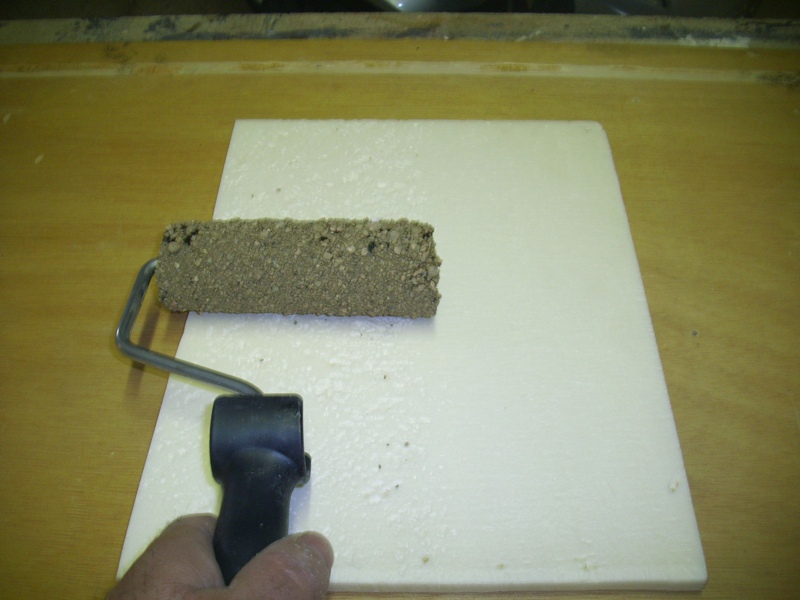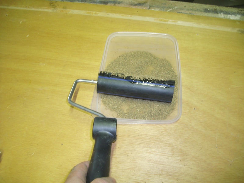 foto 9: pasar el rodillo por la arena procurando que quede todo lleno y dejar secar bien. Las primeras pasadas que se dan con el rodillo suelen saltar algunas piedras de la arena, pero esto no es un problema, suelen caer las más grandes.
