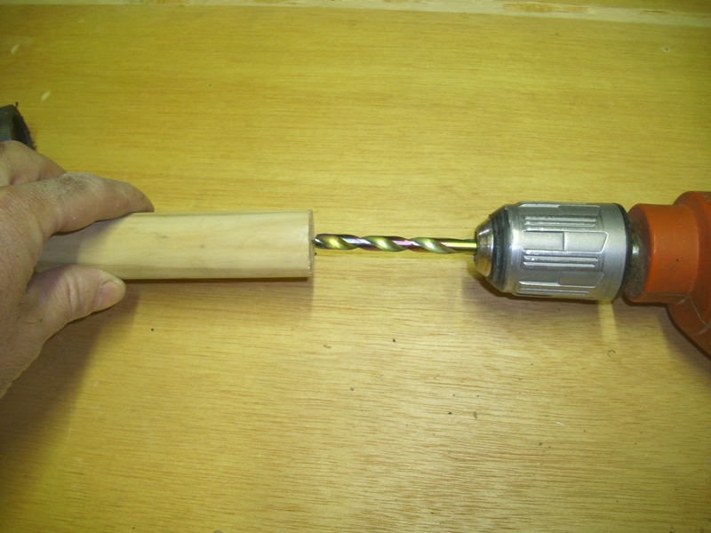 foto 6: hacer un agujero tan centrado como se pueda en el centro de la barra de cortina, tiene que ser un poco mas grande que la medida del rodillo, para que pueda rodar sin problemas.