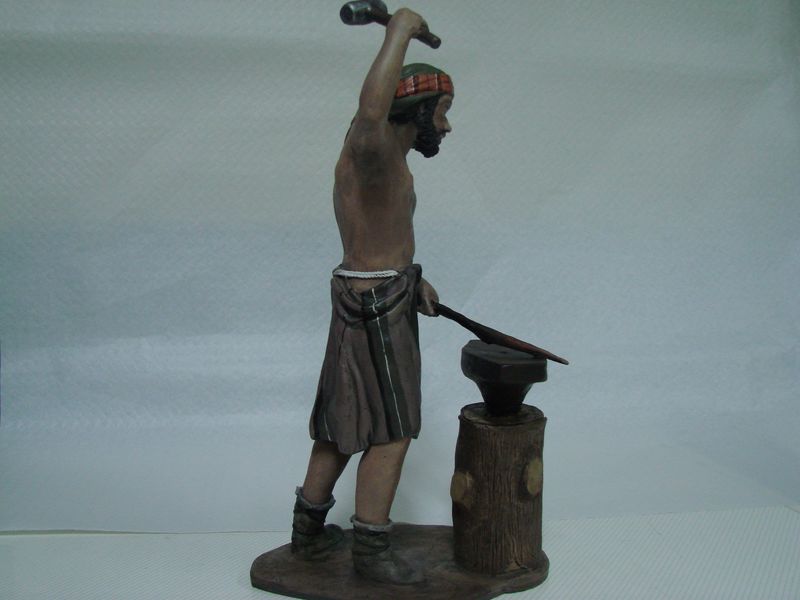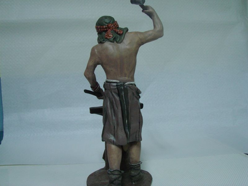 Bueno primeramente deciros hola, y segundo os pongo el Herrero que ya os presente en el antiguo post donde se veia modelado pero no acabado. Si os dais cuenta y comparais comprobareis que a surgido unos cambios. A sido debido a que cuando estaba la pieza en el horno se volco y e tenido que restaurarla por lo que a cambiado un poco la fisonomia de la pieza. Es un modelo de Mayo pero lo considero exclusivo ya que en ese tamañano no existe y aparte lleva toques mios como la muñequera, las botas etc... Espero que os guste os mando UN SALUDO.