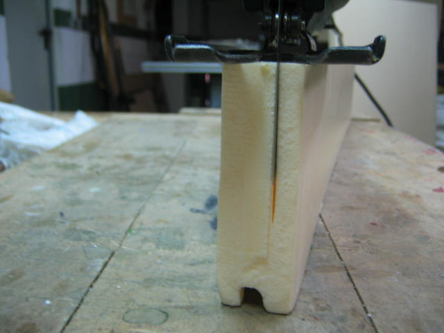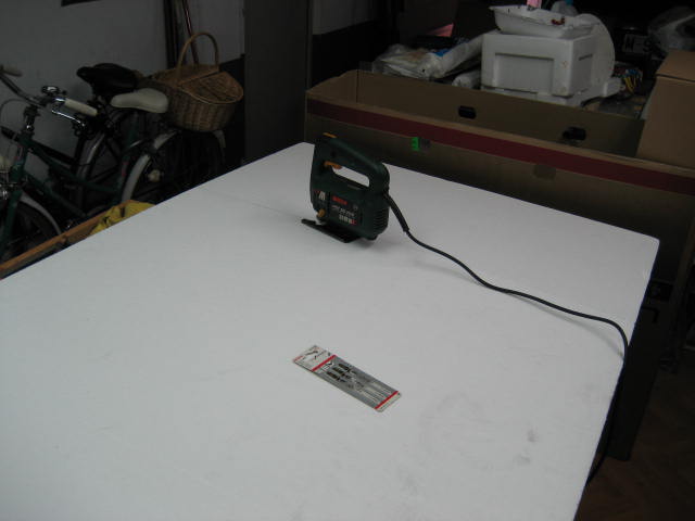 Para cortar trozos de la plancha original,propongo cortar las piezas iniciales no con cuter ni con hilo, sino con una sierra de calar montada con sierra especial para cortes de materiales blandos.Paso a poneros unas fotos y como podreis ver los cortes son perfectos y no se desprenden las tan molestas "bolitas".