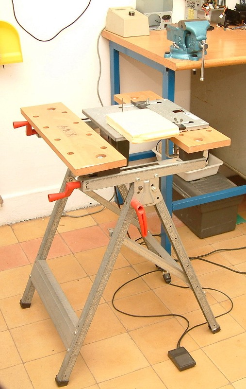 Vuelvo a insistir en otra forma de cortar porexpan,que no es con el hilo de nicron.Creo que a veces nos obcecamos en construir cortadoras grandes cuando en realidad ¿para que queremos adelgazar de una sola pasada toda una lámina de porex de 1m o más?.Podemas adelgazar pequeñas piezas que como mucho no pasaran de 20 ó 30cm en la mayoria de los  casos.