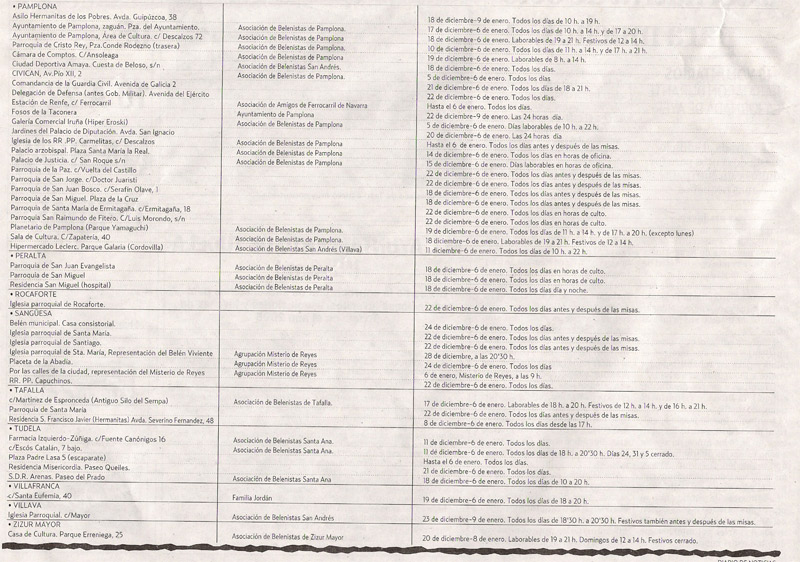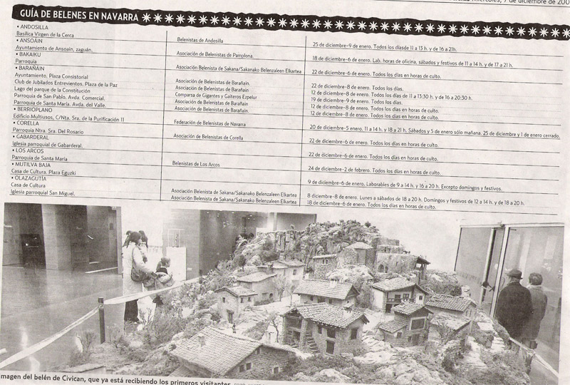 Me gustaria saber si alguien me puede decir los horarios de los belenes que exponen en Corella y Tudela o alguno más por Navarra, pues me gustaria conocer aquella zona estas navidades y me han hablado muy bien de estas dos localidades y sus belenistas. Gracias de antemano.