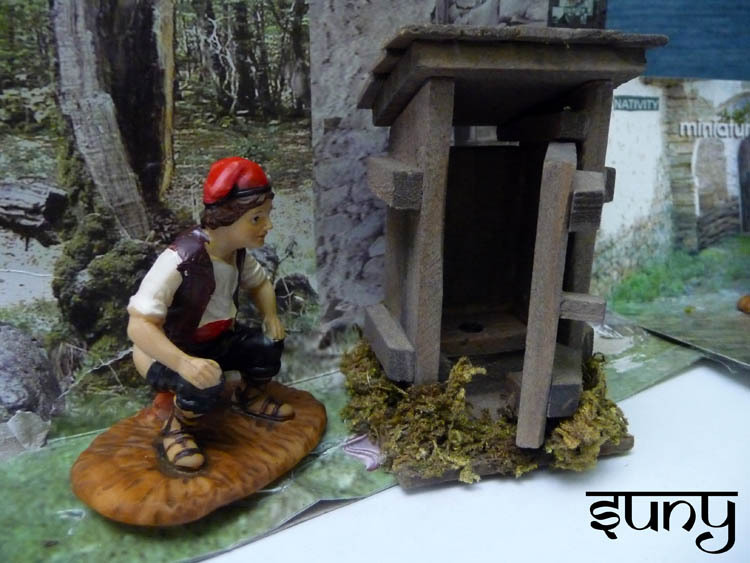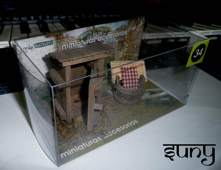 Todas las construcciones, pozos, molinos son para belenes con figuras muy grandes. Solo pude comprar alguna cestita con comida para mis figuritas.