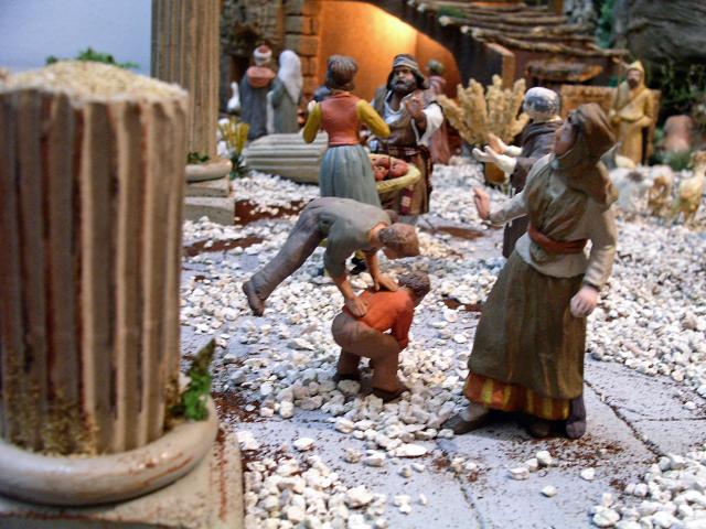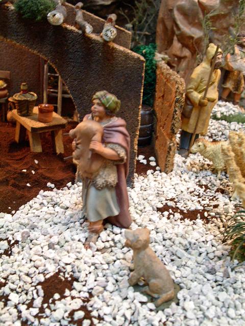 Lo que más me gusta de mis figuras es que he colocado el Silvano de Joan, que realmente pega con cualquier tipo de belén. La Sagrada Familia y los dos pastores adorando, así como el posadero gordo y el pastor durmiendo son de Daniel Alcántara (y puestos en el belén parece que estén vivos) La vendedora de manzanas y el monje son populares napolitanos. Un viejo y una mujer embarazada al lado del belén, así como los niños jugando, son de Carlos Delgado. La señora que se enfada con los niños y la caganera (casi no se ve detrás del belén) son de Montse Ribas. El pastor gaitero y dos pastores más, debajo de la montaña y cerca del pastor dormido son de Gemma Beltrán. El resto de las figuras repartidas por el belén (hay un leñador muy antiguo, dos viejas solitarias, una pareja recogiendo setas, un pastor "ravi" y la anunciación, además de numeroso pecoraje) son populares (creo que una vieja podría ser de Castells y alguna de las piezas más pequeñas de la anunciación tb; tb son de Castells muchas de las ovejas)