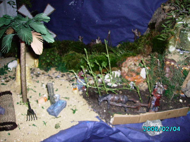 En todo caso, Jesús, si el huerto no es local y representa alguna escena de la época de Jesucristo, por favor, no pongas una tomatera. Recurso muy usado porqué con cuatro palos entrelazados y en bancal más unas ramitas y algo de plastelina roja queda muy bien como tomates en huerto. Pero es que no se habían inventado.