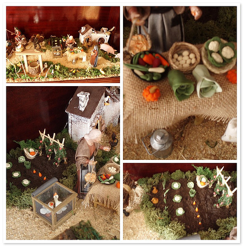 e cogiddo abono para plantas y e formado una especie de cuadrado con surcos, y en los surcos e pues mis creaciones de verduras, zanahorias, coles, lechugas, puerros, tomateras.... y queda muy bonito, ademas de que tengo cerca un lago de mi belen y e aprobechado para poner desde la noria un canalon para que llegue asta una alberquita que tengo desde donde se supone que cogen el agua para regar, y todo me a quedado muymbien,