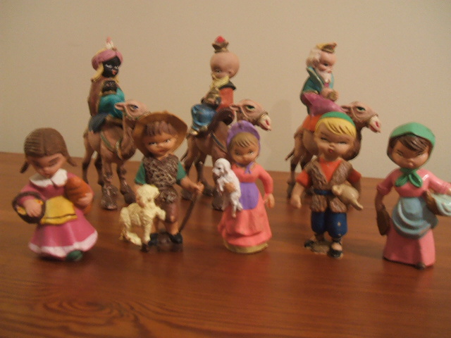 La foto 10 es de un nacimiento de escayola que pinté yo misma hace años junto al resto de figuras del belén, incluidas los reyes magos. Son las que pongo en el belén de mi casa cada año.