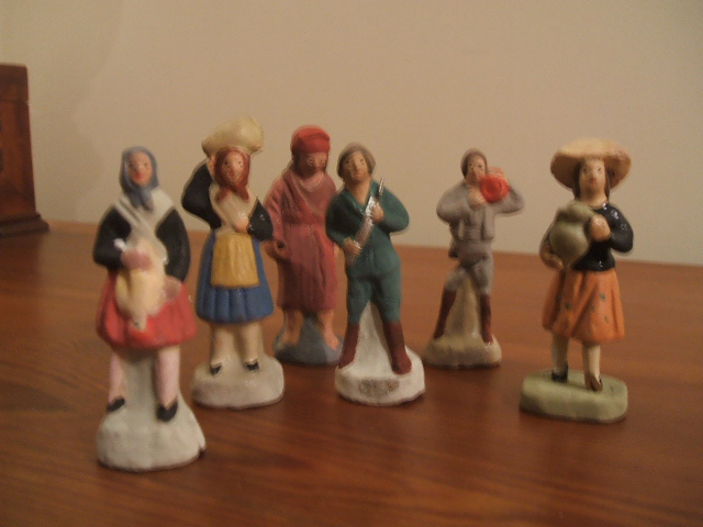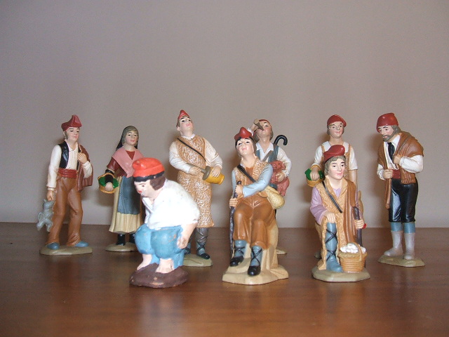 Además de las figuras que habéis visto en las fotos anteriores hay que añadir unas con significado muy especial para mí porque han sido regalo de un forero que tuvo el detalle de mostrarme la Fira de Santa Llúcia y explicarme cosas muy interesantes sobre distintos figuristas, además de permitirme ver su espectacular colección de figuras de pesebre. Se trata de un lote de pastores típicos catalanes, todos con su barretina y acompanyados por un caganer como no podía ser de otro modo. Intentaré poner la foto cuanto antes y así ya podréis ver mi miniciolección entera.