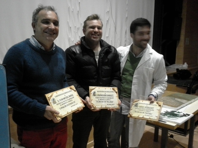 Seguidamente Rubén Galindo, con la ponencia sobre el tallado en escayola, y para finalizar Rafael Rodríguez (Rafa Torres) sobre pintura usando el estilo italiano.
