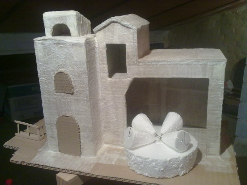 hola,me gustaria que entre todos me hechaseis un cable.Es una construccion que tenia aparcada hace algun tiempo porque no me combencia es de carton,papel y cola como se aprecia en la foto,se me ha ocurrido tranformarlo en molino de viento por eso acudo a vosotros.Millones de gracias de antemano.
