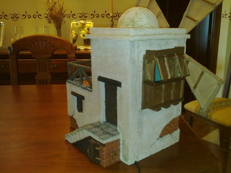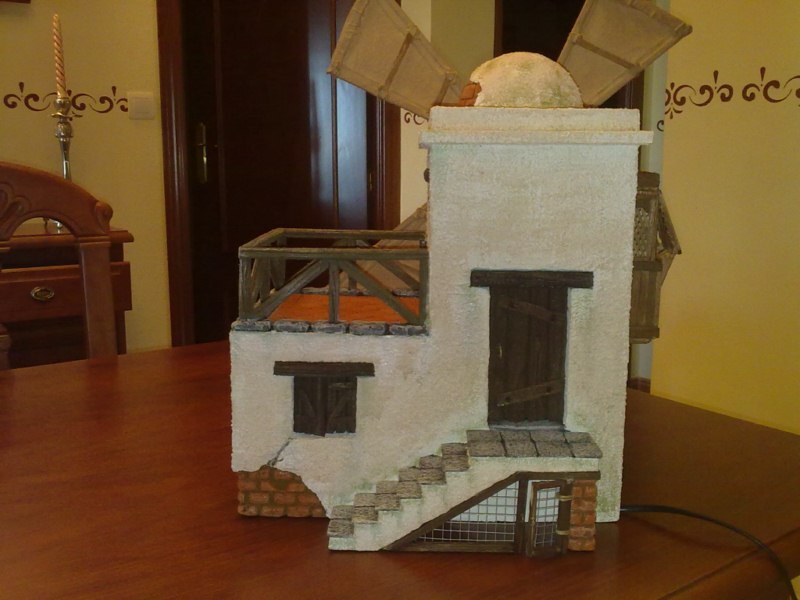 Pero bueno pero que maravilla que has hechos que mas quieres que te digamos si practicamente lo tienes preciosisimo, pues darle unas buenas pinturas, un aspa bonito bonito y algo de vegetacion y alguna luz interior y eso sera impresionante, saludos.