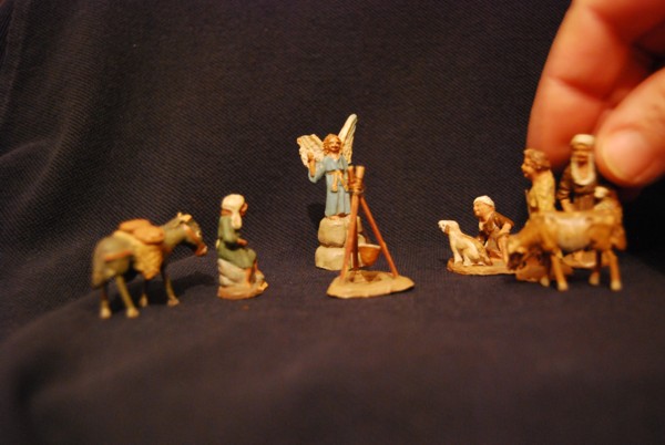 Me llama poderosamente la atencion que estas pequeñas piezas hayan permanecidos juntas durante tanto tiempo y me hayan llegado formando el conjunto completo, de las figuras de un Nacimiento.