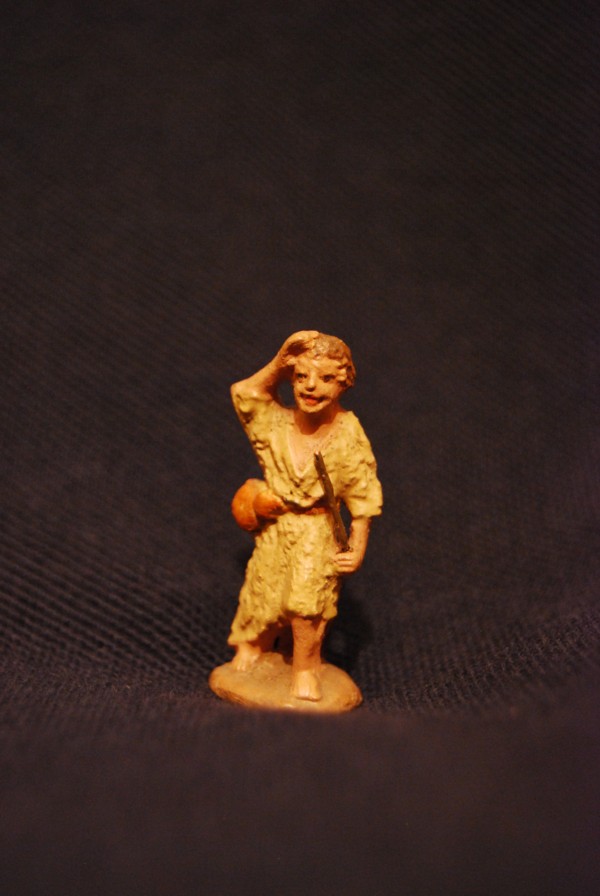 La pieza que pongo a continuacion me ha llamado la atencion por el tamaño del perro, apenas mide unos milimetros. Tambien se aprecia que el pastor esta sonriendo. Curioso para una figura tan pequeña.