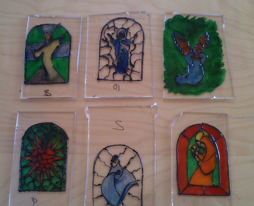 Hola a tod@s. esta son las vidrieras que estoy haciendo, si alguno de vosotros tiene una idea mejor estaria encantado de que me ayudaseis tambien subo una foto de las lacas y el compuesto para hacer el realce...Un saludo