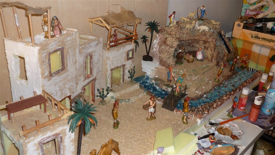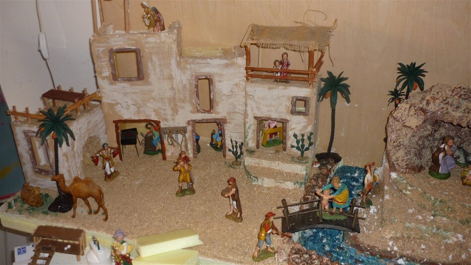 Metto altre foto del mio presepe che sta prendendo forma. Devo inserire le luci e dipingere meglio le case. Altri suggerimenti? Altre idee?