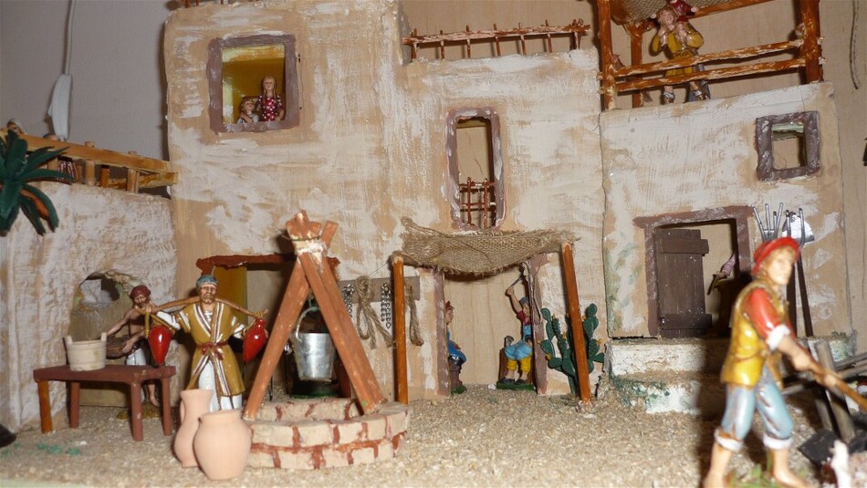 ho bisogno di un consiglio per finire il presepe. cosa posso mettere nella piazza che mi sembra un pò vuota? un pozzo? una bancarella che vende il pesce? degli animali al pascolo?