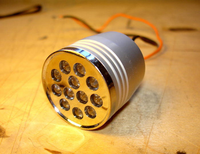 Yo este año voy a intentar utilizar los led en cuento me sea posible. Hoy he estado en un comercio especializado y me han mostrado una lámpara foco a led, tiene aproximadamente un diámetro de 5 o 6 cm. y esta compuesta de 19 led para conectar a 12v. , su valor es de 12,60€ cada uno.