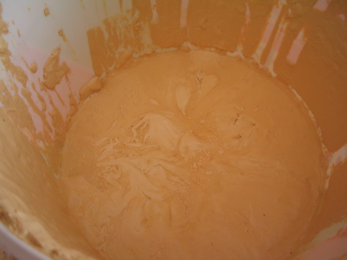 paso 2. Luego y antes de que se seque le doy una mano de terracota que quedara suavizado al mesclarse con el color hueso.