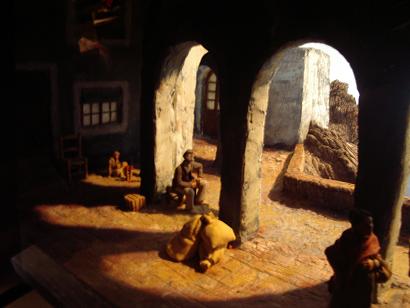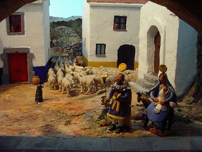 Dentro de los desafíos técnicos, destaca una casa de la Sagrada Familia, con carpintería de San José y una tormenta exterior realmente espectacular. Me ha gustado muchísimo una "Nit de Reis" con los reyes en la penumbra y un "caganer" que dignifica esa atropellada figura popular. Como este agosto estuve en las Azores, también me ha impresionado un pesebre portugués con las casas de un legítimo estilo luso. Hay unos curiosos reyes magos (creo que de Castells) discurriendo por la Mancha.