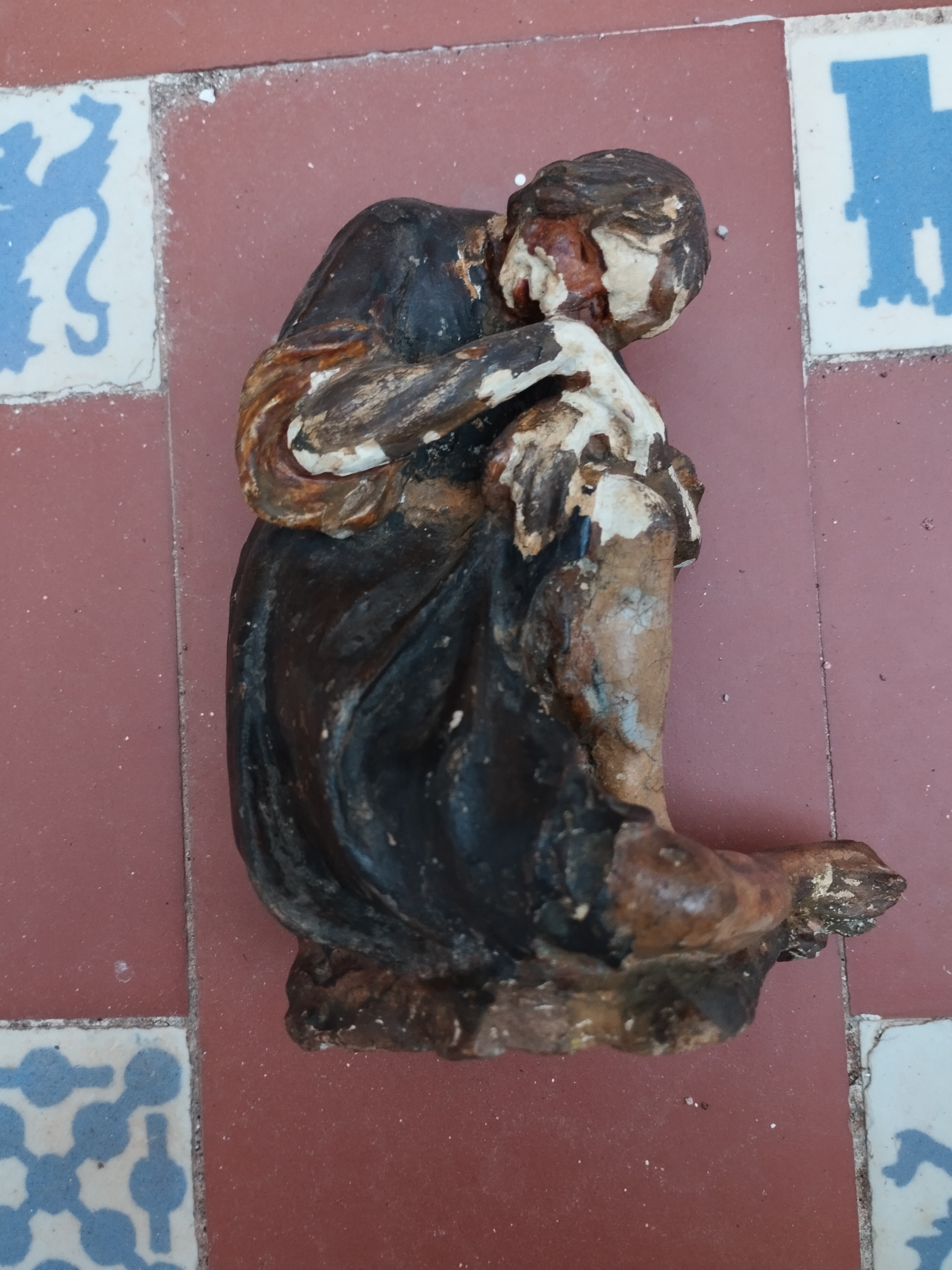 Continuando con las pesquisas... Al igual que con las figuras del Maestro de la colección Gelabert , intenté de nuevo establecer una comparativa, esta vez con las de Pau Xacó , que resultan ser aún mayores en dimensiones. A pesar de la evidente desproporción en los detalles, especialmente en los rostros y las manos, encontré cierta similitud en el tratamiento de las vestimentas. Esto me llevó a plantearme si Xacó podría ser el autor que busco y si también habría realizado figuras de pesebre de menor tamaño. Sin embargo, al analizar la descripción que Joan Yeguas ofrece del autor en su trabajo de investigación, parece poco probable que así sea, aunque el margen para discernir sigue siendo limitado.