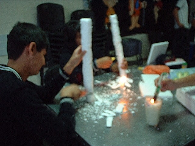 no saben como me ha costado que los niños sigan con la gama de colores que he aprendido deben llevar las casas para el Belén, no les gustan los neutros y mucho menos el blanco, como buenos mexicanos pintan todo de colores canijos...rosa , le llamamos por acá "mexicano", verde perico, azul , etc...creen que tengo problemas por pedirles las blanqueen un poco pues era la usanza y en fín los entiendo crecemos entre alebrijes y artesanías de otro tipo, incluso los nacimientos aquí como alguna vez presenté estan basados en la artesanía mexicana....pero bueno que quieren después de conocer este foro, andar por aquí y ver sus fotos tengo una idea muy fija de lo que hay que hacer...claro, ojalá algún día con su calidad, les mando fotos de una casita nueva y los rostros de mis niños en cera (los hicimos pára la expo del día de muertos que festejamos de manera especial en las escuelas)