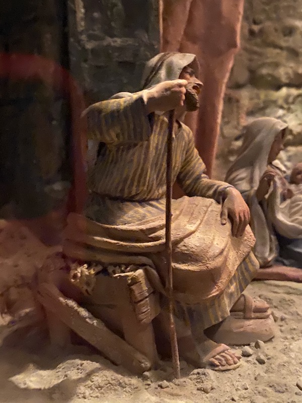 Pues si… Manolo y Lola viajaron a Barcelona con San José sentado apoyado sobre una pierna, con la mirada atenta a la Virgen y la bolsa de monedas sobre la rodilla… para que Martí Castells y su hermano recrearan ese molde de Ortigas de singular belleza y curiosa configuración en una pieza a palillo de trece centímetros para un diorama que hoy podemos ver en el mágnífico Museo del Belén de Jerez de la Frontera, en un maravillos casco de bodega de la Calle Circo.