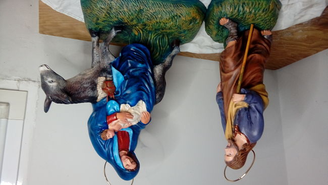 Una curiosidad, la figura de la Virgen, niño Jesús y mula es mismo molde que la expuesta en la muestra de Sant Andreu de Llavaneres, con la diferencia de disposición de las herramientas de San José.