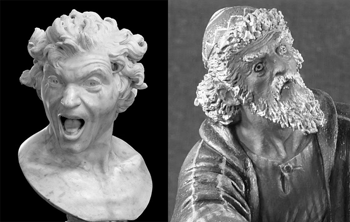 No podrás decir que como con Miguel Ángel también hay similitudes, posibles en la disposición, postura y sobre todo expresión corporal y en rostros con Bernini:
