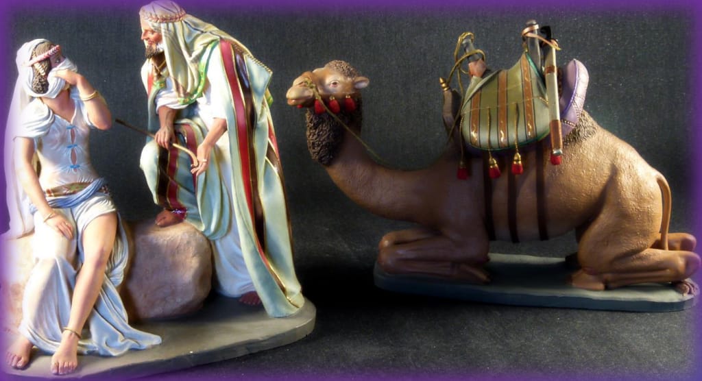 'Morisca y camellero' 20cms Daniel J. Pons.jpg (74KB - 134 descargas)El 'sistema de trabajo' parte de un encargo inspirado en una lámina... como es el caso de la única foto de Daniel J. Pons con una en su mano (en su propio hilo subida por carlos tgna) y qué al final encontré a su autor, el pintor orientalista austríaco Rudolf Ernst (1854 a 1932), que a mi parecer demuestra esa influencia academicista que marca el 'no estilo' de Daniel en sus figuras de belén, al no hacer una reproducción exacta sino una interpretación del personaje de la lámina de R. Ernst.