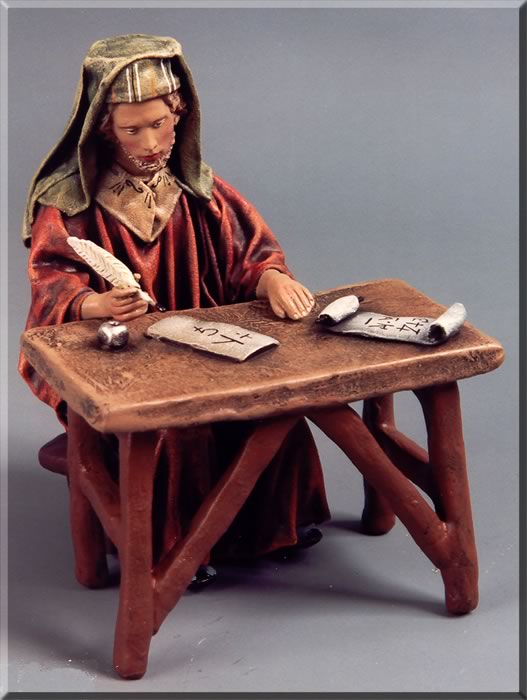 Drake, creo que la figura a la que te refieres de Daniel Alcántara, no se trata de un escriba, sino de un rabino enseñando la Torá a los niños.
