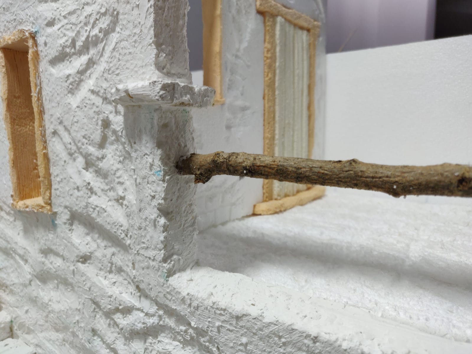 Buenas tardes foreros. Después de algún tiempo sin hacer nada, este año me ha tocado preparar el Belén de nuestra Parroquia. Para ello, tengo que preparar un Portal y distintas edificaciones. Para la primera vivienda, he pensado en una edificación que tenga en si tres y por la parte de atrás un corral. Consta de dos plantas y para ello he utilizado poliespan (el de bolitas). He realizado unas hendiduras en la fachada con el soldador y ayudándome también del cuter para quitar las lineas rectas a las piedras que asoman en la fachada. Para dar textura y a la vez color a la fachada he utilizado mortero monocapa de la marca Puma y de color crema. Tengo que añadir que está hecho para figuras de primer plano de 21 cm.