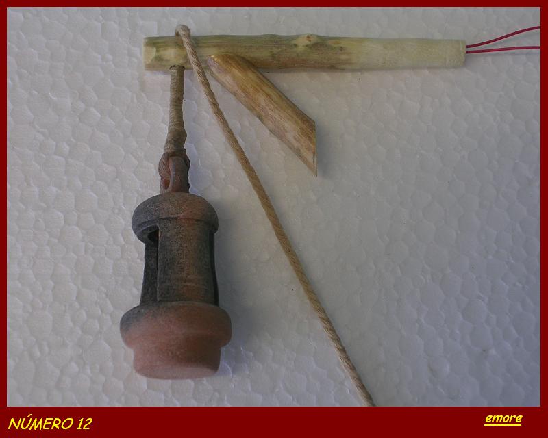 Al soporte le hago dos taladros uno perpendicular de 3 mm, por donde pasan los cables y la cuerda, y otro horizontal de 2,5 mm, por donde pasan sólo los cables. Te pongo las fotos números 10, 11 y 12 para que lo veas más claro.