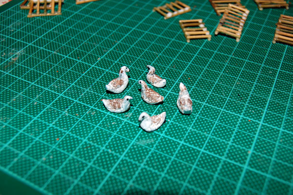 La jaula para las palomas la he hecho con ramitas de junco que previamente he secado. Las palomas también están hechas por mi con pasta de papel. Para ser las primeras y teniendo en cuenta que los defectillos no se van a ver dentro de la jaula....
