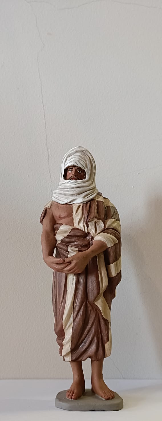 Según el propio Joan Castells, su trabajo en los últimos años consiste en figuras "modeladas". Este "manelic" (pastor árabe de inspiración fortuniana) es, en sus manos, un auténtico palillo. En mi opinión, es una pieza única en dos sentidos: primero, como representación del pastor, una figura arquetípica del belén ; y segundo, como una creación original que no aparece en el catálogo familiar de Castells (por lo menos yo no lo encuentro...).