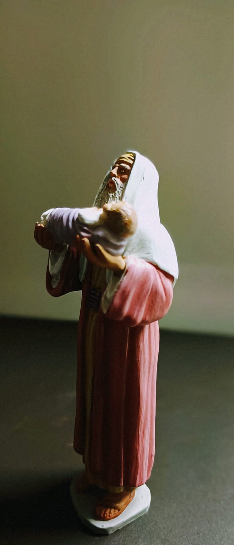 La comanda de junio ya está en casa. Todas las figuras están modeladas: el sacerdote con el Niño Jesús (11/12 cms.) para el episodio de la Presentación de Jesús en el Templo, que formará grupo con los palillos de su tío .